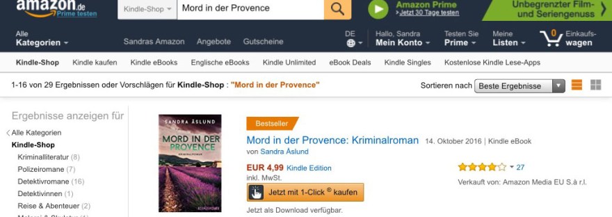Bestseller-Status! Februar 22, 2017Februar 22, 2017 sandraaslund „Mord in der Provence“ ist auf Platz 1 in den Kategorien „Römisches Reich“ und „Malerei & Skulptur“ … Amazon hat schon erstaunliche Statistiken 🙂 Teilen mit: Auf X teilen (Wird in neuem Fenster geöffnet) X Auf Facebook teilen (Wird in neuem Fenster geöffnet) Facebook Gefällt mir Wird geladen … Veröffentlicht von sandraaslund Zeige alle Beiträge von sandraaslund