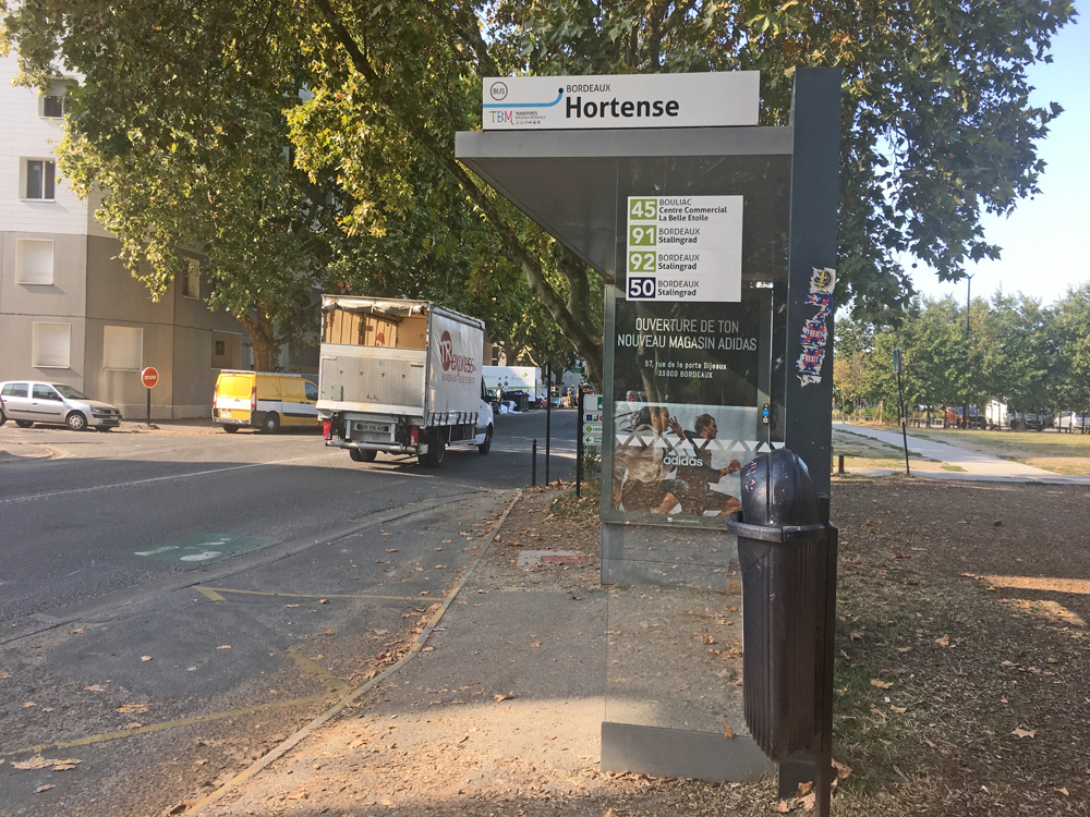 Früher habe ich mich nicht so intensive mit den Vierteln rechts von der Garonne befasst. Doch nun sollten dort einige Szenen spielen, beispielsweise im Parc aux Angéliques, der sich als schmaler Grünstreifen am Ufer entlangzieht. An der Haltestelle „Hortense“ (s. 2. Foto) trifft sich Claire mit der Barfrau Eponine, von der sie sich Informationen über die verschwundene Studentin erhofft.