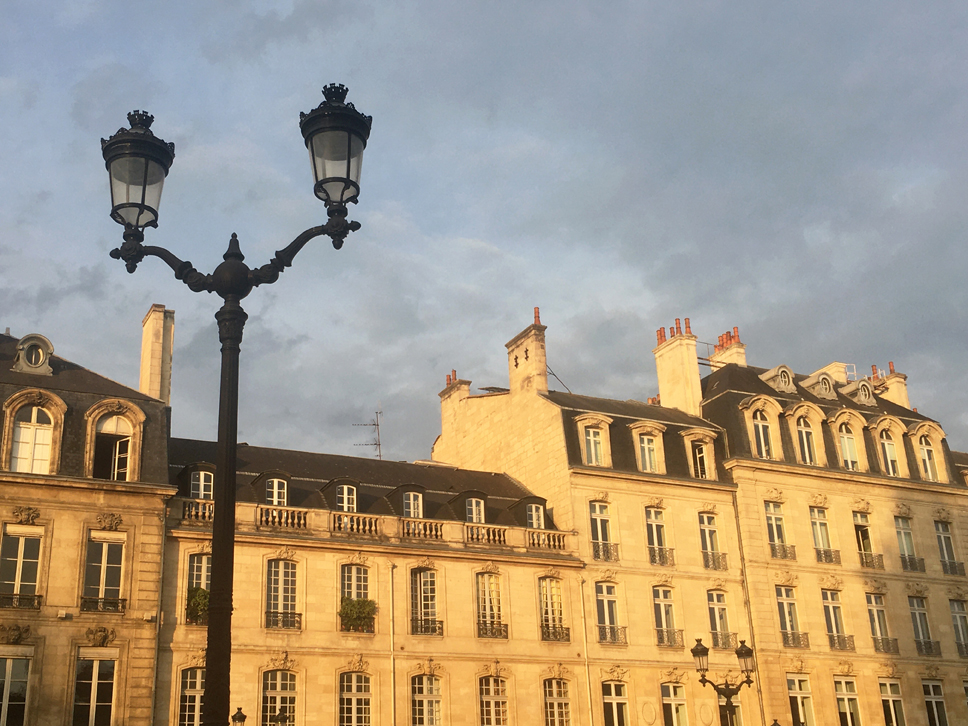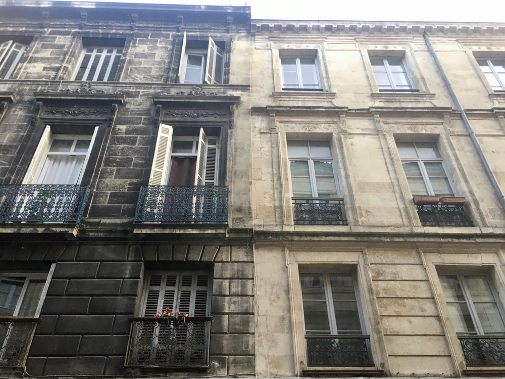 Hier seht ihr die typischen Häuserfassaden von Bordeaux. Ein Großteil der Sandsteinbauten ist bereits saniert worden, andere warten noch darauf, in neuem Glanz zu erstrahlen.