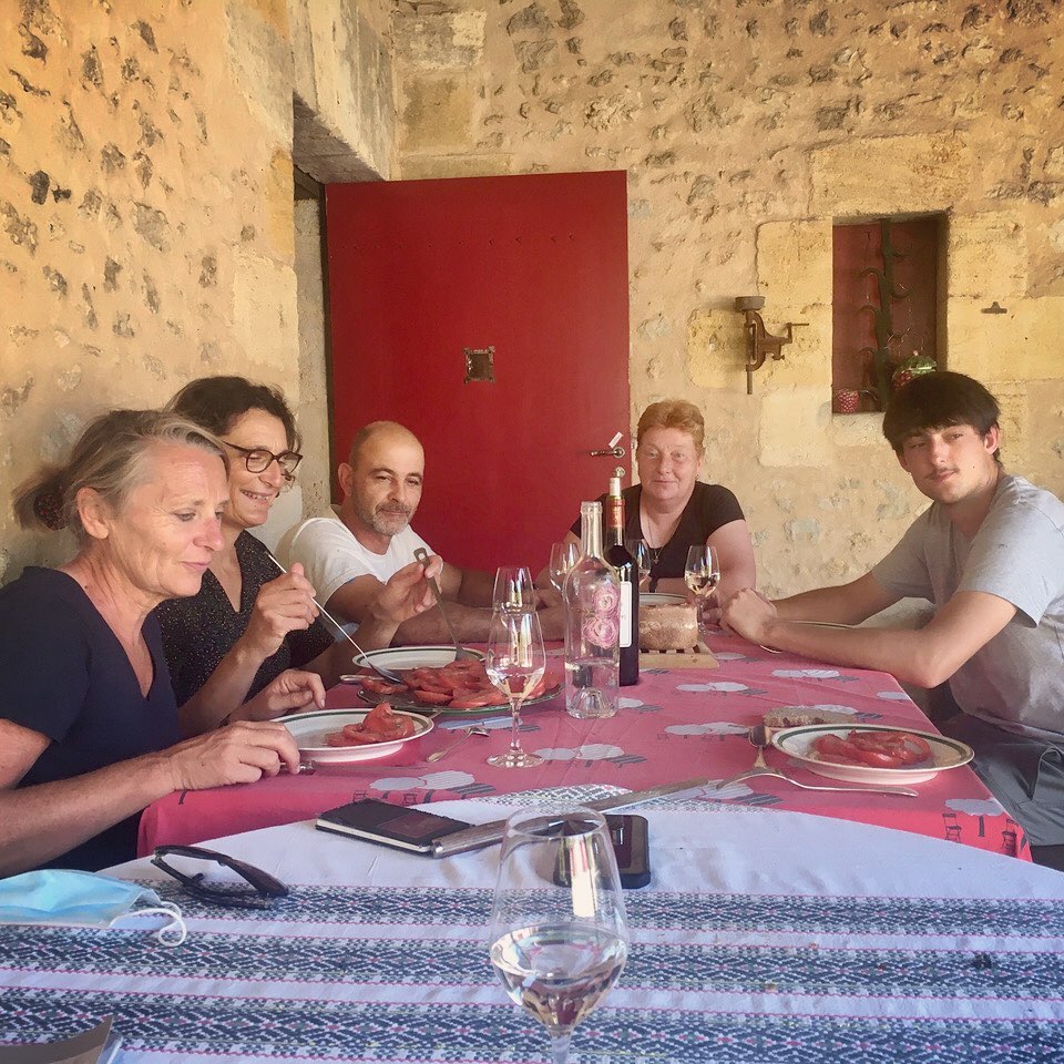 Unvergesslich ist auf jeden Fall auch das Mittagessen, zu dem ich auf Château Bardins eingeladen wurde und das ich gemeinsam mit den Angestellten und einigen Erntehelfern im nostalgisch anmutenden Innenhof des Weinguts genießen konnte.