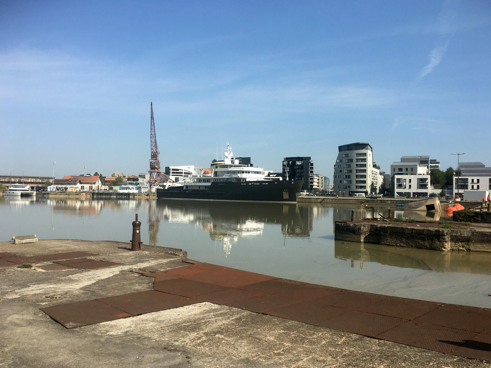 Bei der Gelegenheit läuft sich auch prompt Commandant Chénier in die Arme, der gleich um die Ecke wohnt – natürlich in der obersten Etage mit Blick über die Hafenbecken 😉
